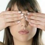 Rub your both palms together.Place them on your close eye-lids so that your hand covers the eye lids. The palm should be placed so that it feels the eye socket.Be careful that it should not create any pressure.. This exercise is called palming and can be practiced several times aday.